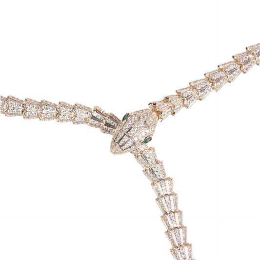 18K gold snake-shaped necklace inlaid with diamonds, luxurious and noble