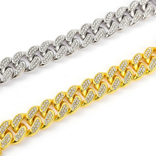 Fashionable Hip Hop Style Cuban Chain Diamond Design Necklace Bracelet Set
