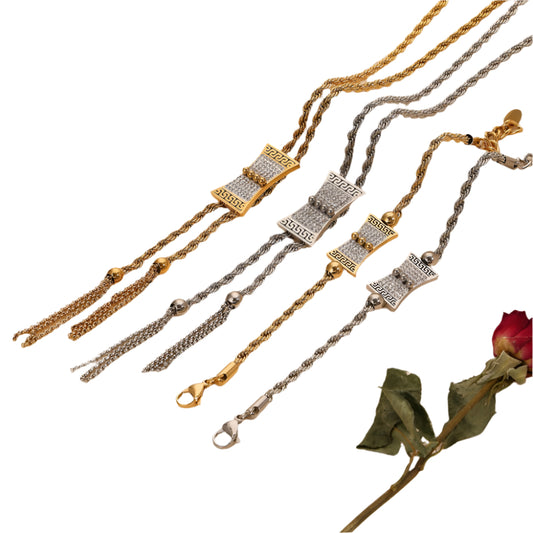 18K gold trendy personality geometric diamond with texture long tassel design bracelet necklace set