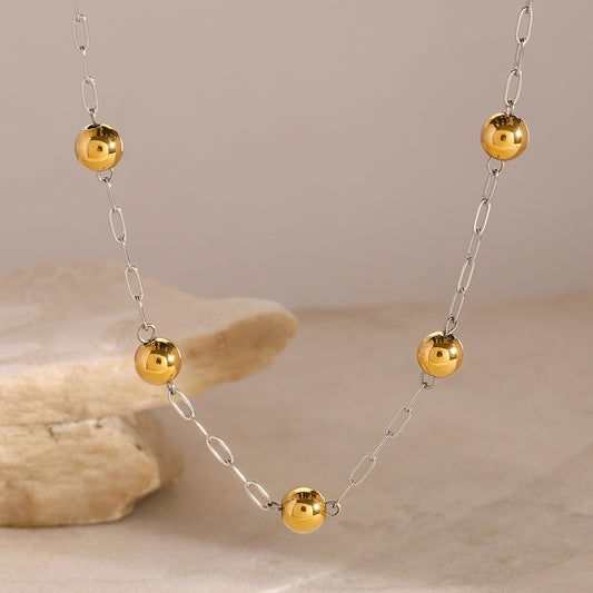 18K Gold Fashion Simple Chain Design Beach Style Bracelet Necklace Set