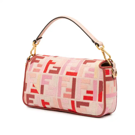 Fendi Zucca Embroidered Canvas Baguette Satchel