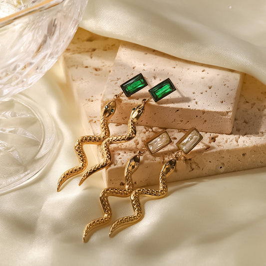 18k Plated Cubic Zirconia Delicate Snake Rectangle Drop Earrings