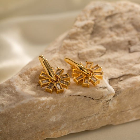 18K Gold Exquisite Retro Inlaid White Zircon Snowflake Design Gold Light Luxury Style Versatile Earrings