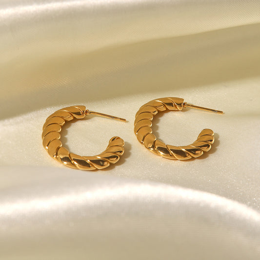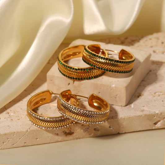 18K Gold Fashionable Double C-Shape Ripple Inlaid White Zircon Light Luxury Earrings