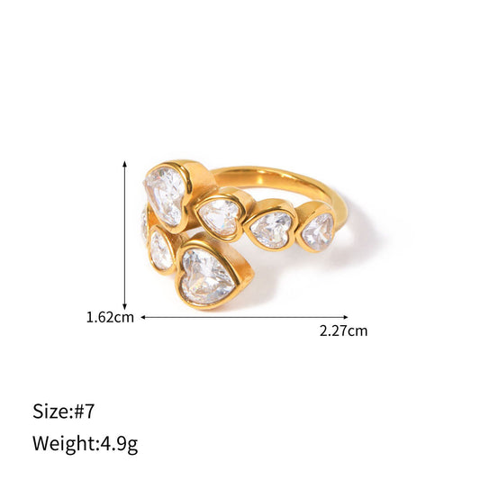 18k gold novel and unique love-shaped zircon staggered design open ring