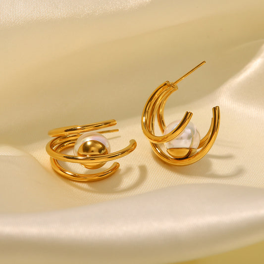 18k Gold Exquisite and Fashionable Pearl C-Shape Design Versatile Earrings