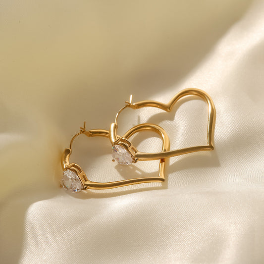 18K Gold Plated Inlaid Heart Zirconia Heart Earrings