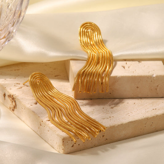 18K Gold Fashionable Long Tassel Earrings with All-Match Elegance