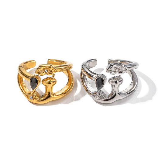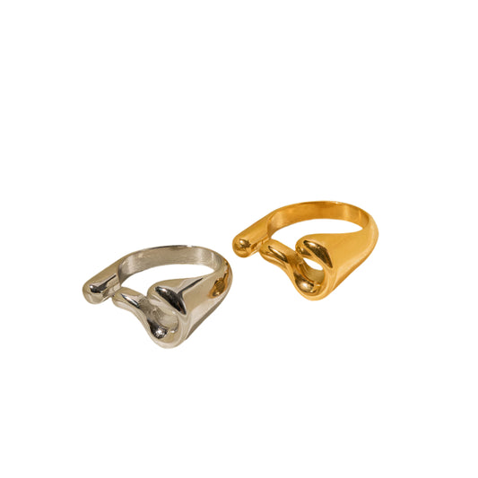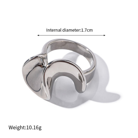 18K gold trendy exaggerated love-shaped design simple style ring