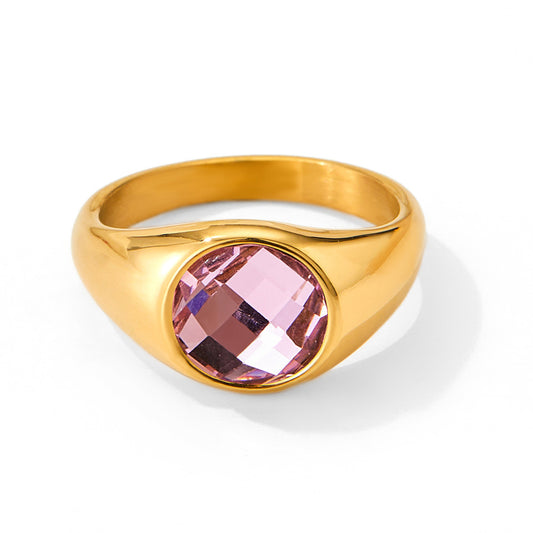 18K gold exquisite simple geometric inlaid gemstone design ring