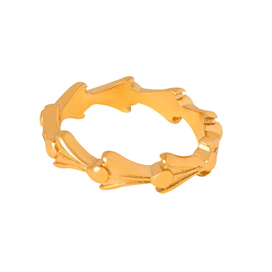 18K gold classic retro joint water ripple design simple style ring