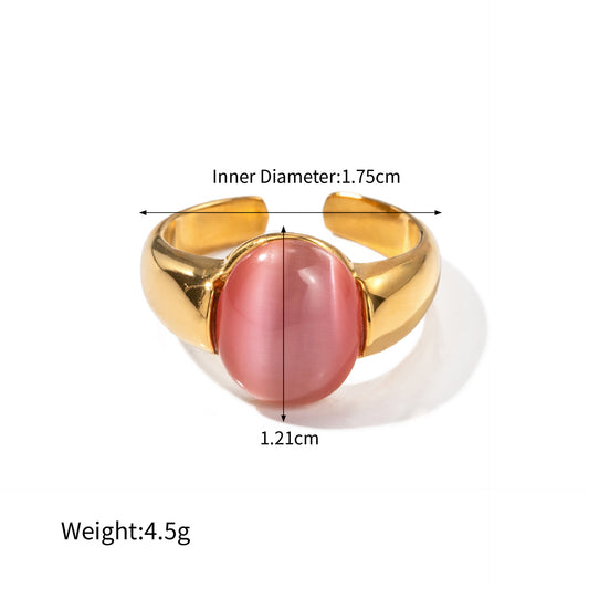 18K gold noble oval inlaid pink cat's eye design ring