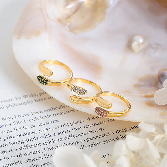 18K gold trendy and fashionable special-shaped embossed gemstone design versatile ring