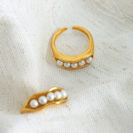18K Gold Exquisite Noble Inlaid Pearl Open Design Ring