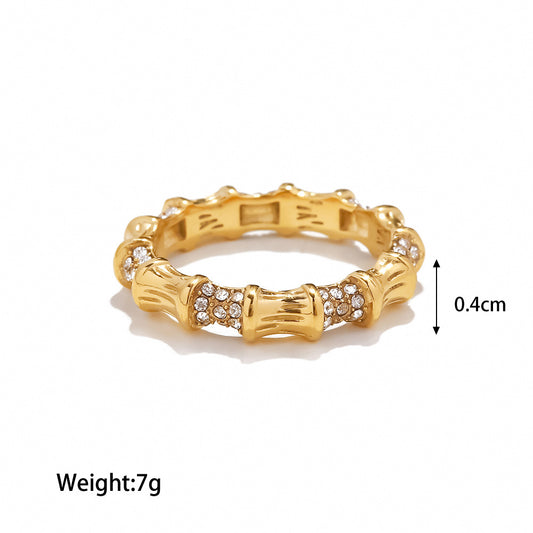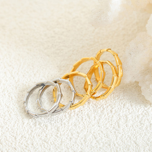 18K gold simple and elegant bamboo-shaped design versatile ring