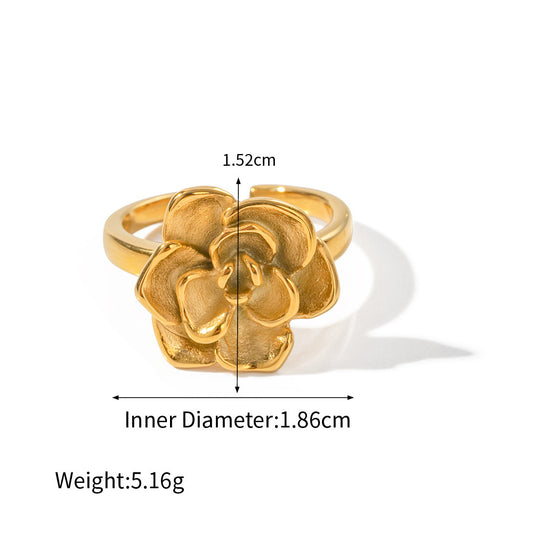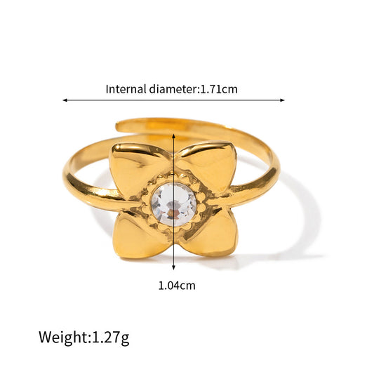 18K Gold Exquisite and Fashionable Flower Middle Mosaic White Zircon Open Design Ring