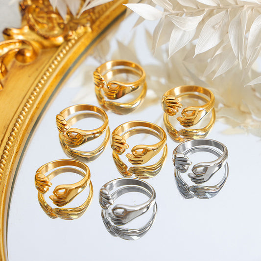 18K gold trendy exaggerated irregular shape/love shape design light luxury style ring
