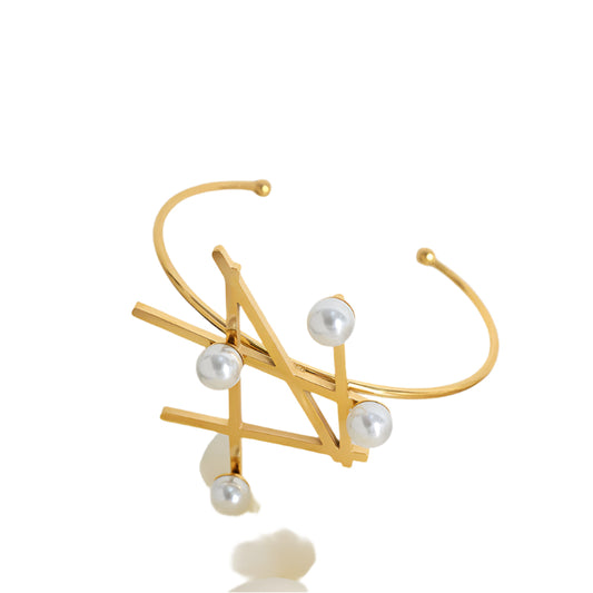 18k gold exaggerated geometric shape inlaid with pearls design simple style ring bracelet set