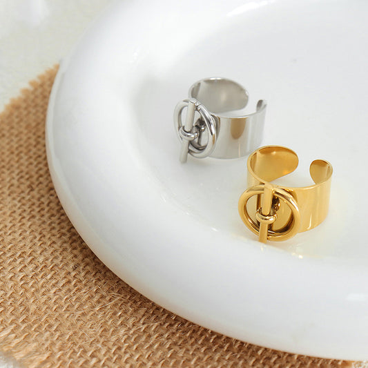 18K Gold Exquisite Fashion Woven Design Simple Style Versatile Ring