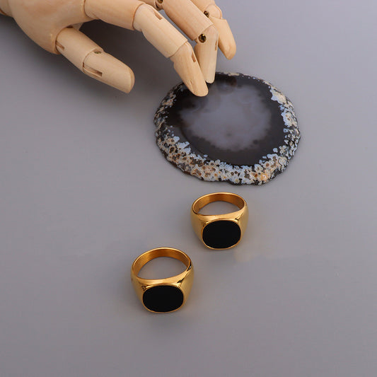 18K gold exaggerated oval-shaped gem-set design simple style ring
