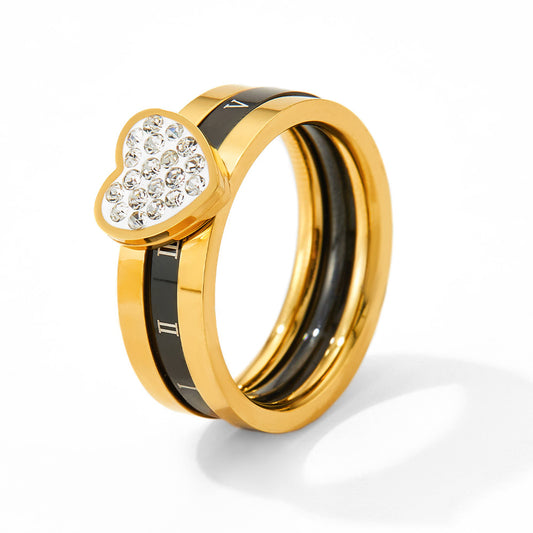 18K gold novel and trendy Roman numerals with love diamond design ring