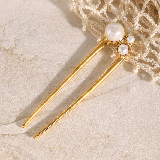 18K gold U-shaped inlaid pearl design high-end hair accessories