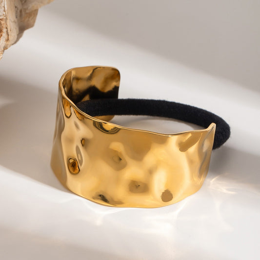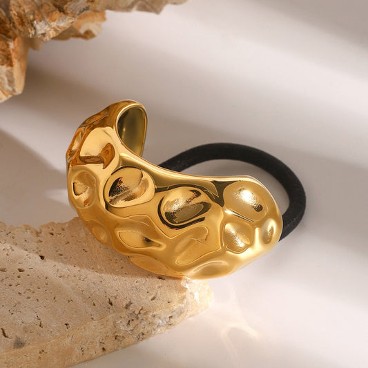 18K gold C-shaped wide face with hammer pattern design light luxury style hair accessories