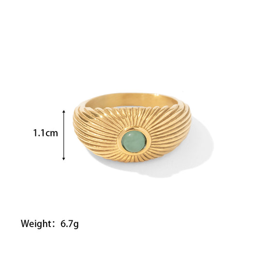 18K Gold Plated Inlaid Natural Green Stone Sun Shaped Punk Ring