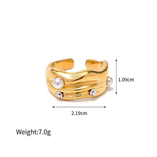 18k Gold Exquisite Dazzling Pearl Inlaid Design Versatile Ring
