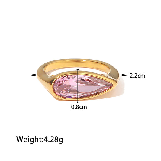 18K Fashion Simple Inlaid Oval Pink Cubic Zirconia Ring