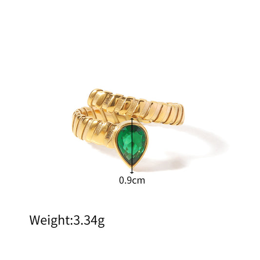 18K gold with white green water drop zircon open ring