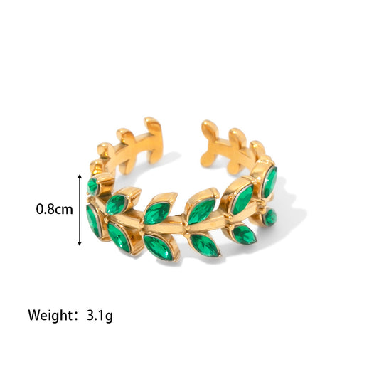18K Gold Plated White Green Zircon Leaf Ring