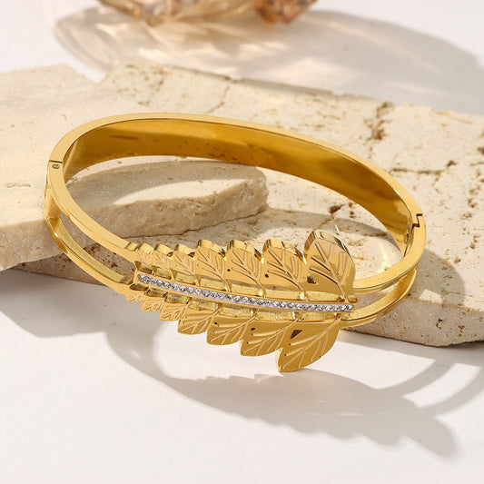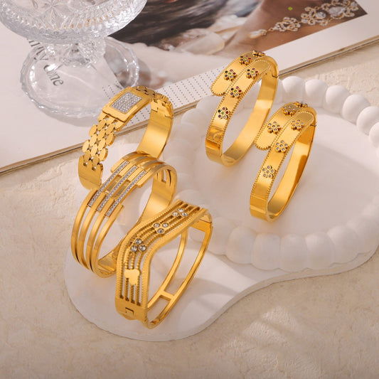 18K gold exquisite dazzling inlaid gemstone with texture design light luxury style bracelet