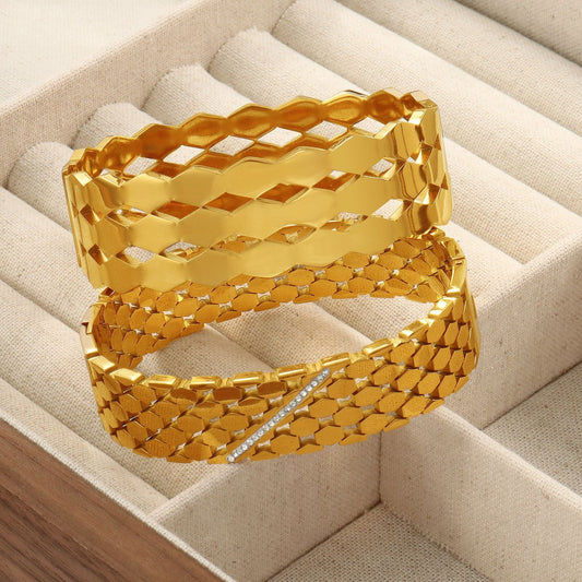 18K Gold Simple Fashion Geometric Wide Design Bracelet