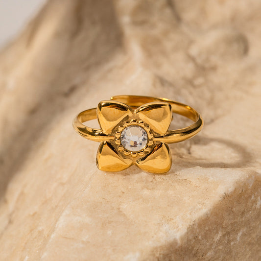 18K Gold Exquisite and Fashionable Flower Middle Mosaic White Zircon Open Design Ring