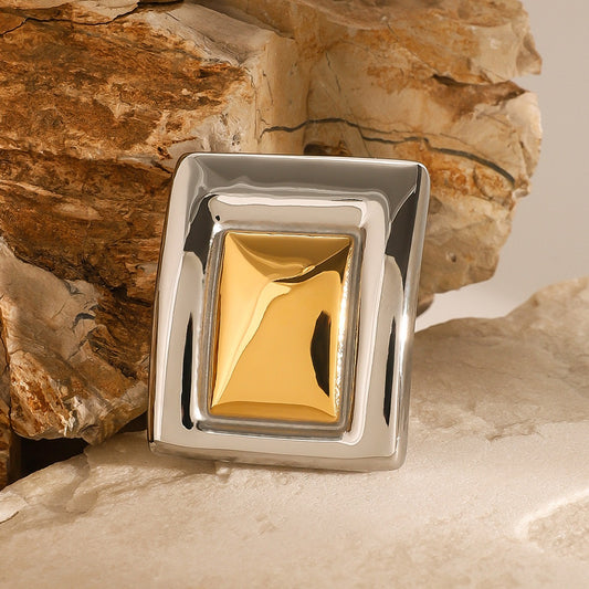 18K gold geometric square with gold and silver contrast design high-end brooch