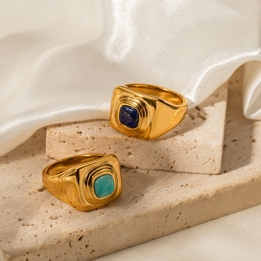 18k Gold Classic Vintage Inlaid Lapis Lapis Design Versatile Ring