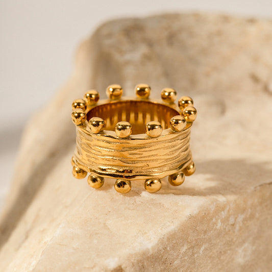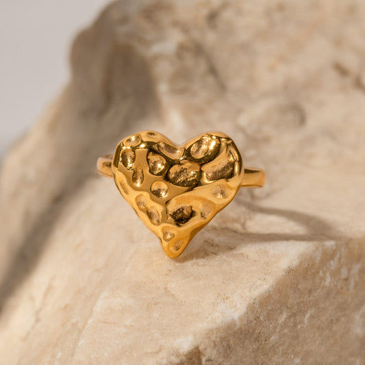 18K Gold Personality Fashion Hammer Pattern Lava Pattern Love Design Versatile Ring