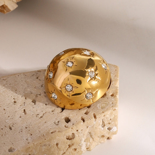 18K gold hemisphere with eight-pointed star pattern inlaid gemstone design light luxury high-end brooch