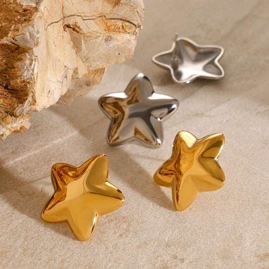 18K gold novel personality chubby five-pointed star design simple style earrings