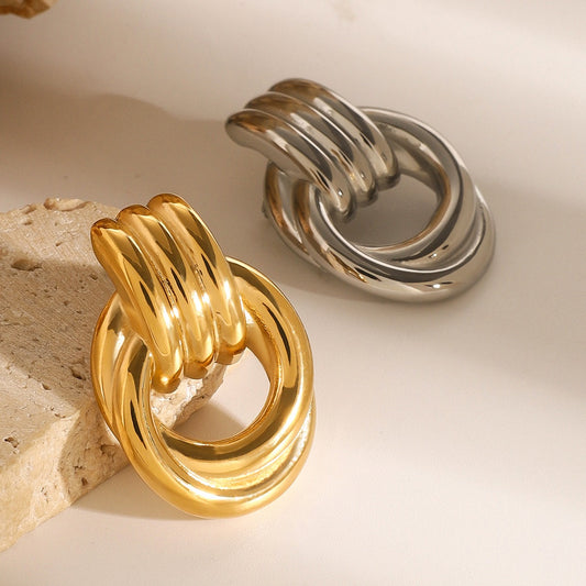 18K gold O-shaped gemstone-inlaid earrings with a light luxury style
