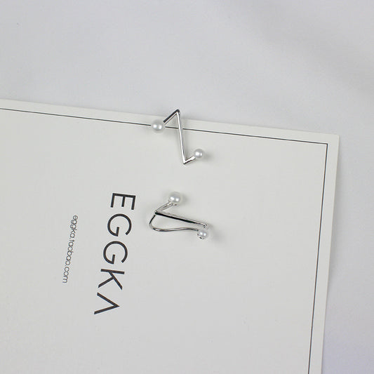 Triangle White CZ Natural Pearl 925 Sterling Silver Studs Asymmetry Earrings