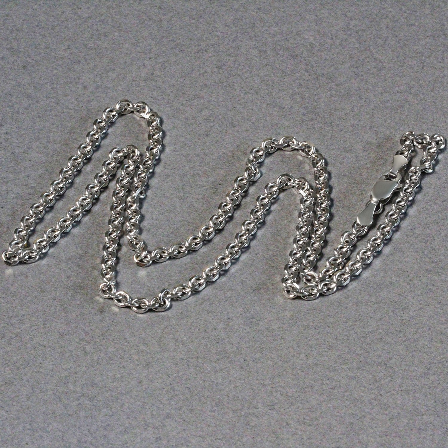 This diamond cut cable link chain comes in 14k white gold and has a width of 3.1 millimeters.