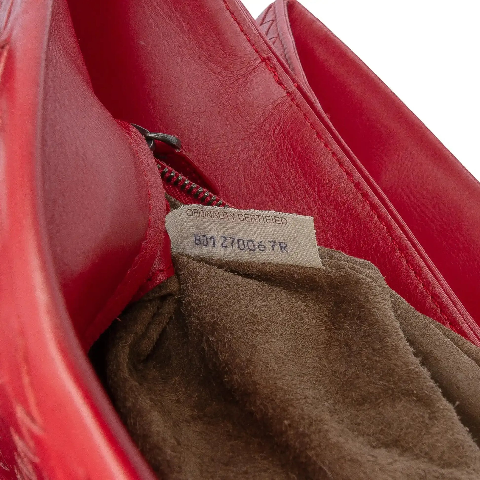 | Description | The Medium Roma features a woven nappa leather body, rolled leather handles, a top strap with a push lock and magnetic closure, interior compartments, and an interior zip pocket. | ||||||||||||