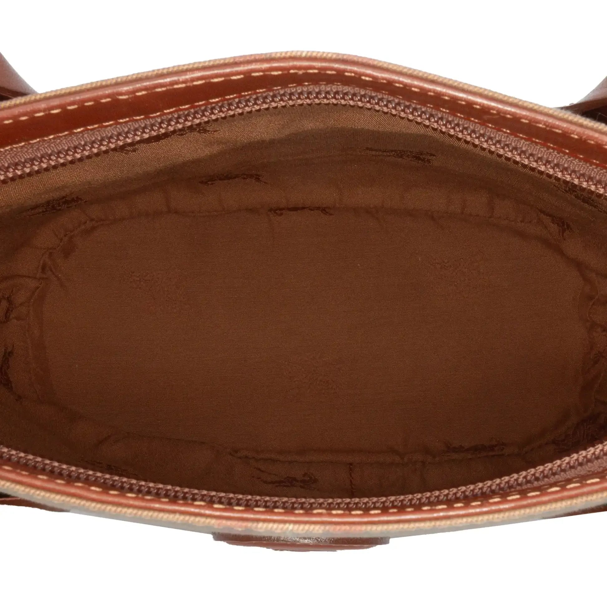 Description | This bucket bag features a canvas body with leather trim, rolled leather handles, a top zip closure, and an interior zip pocket. | ||||||||||||