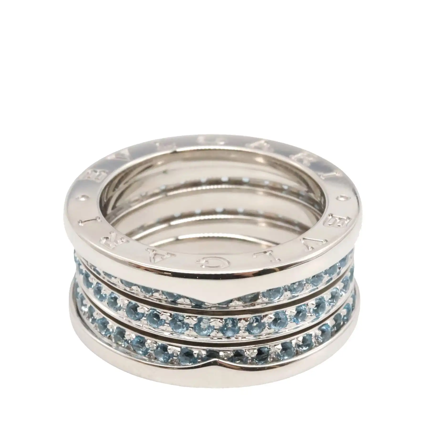 Bvlgari 18K White Gold and Blue Topaz B.Zero1 Three Band Ring