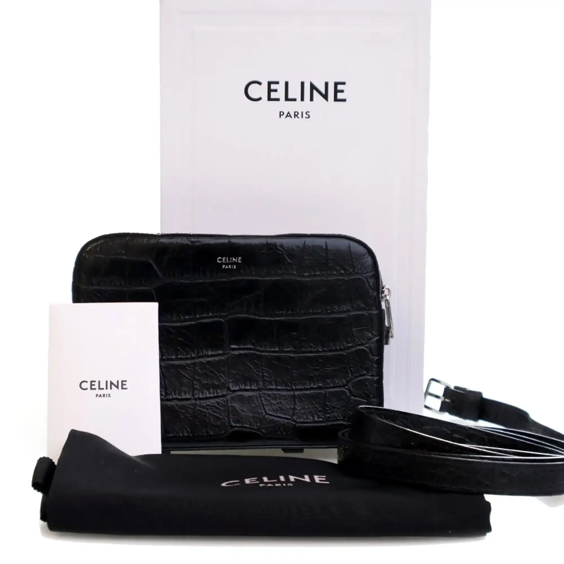 Celine Croc Embossed Leather Horizontal Phone Pouch Crossbody