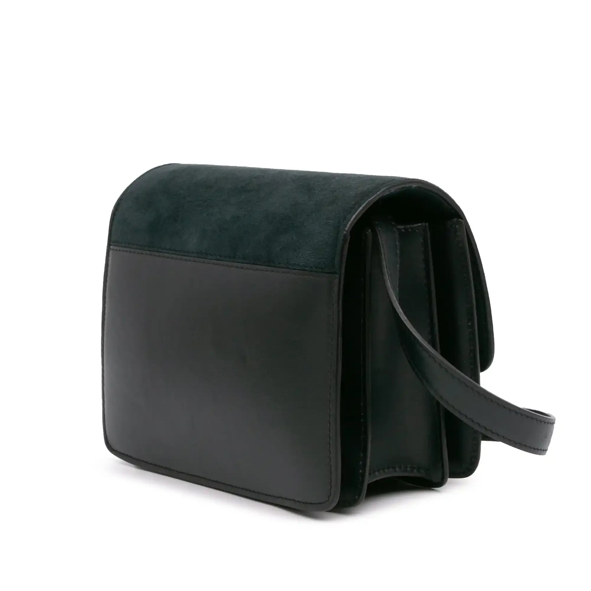| Description | The Classic Box crossbody bag features a suede leather body, a flat leather strap, a front flap with a push lock closure, and interior slip and zip pockets. | ||||||||||||