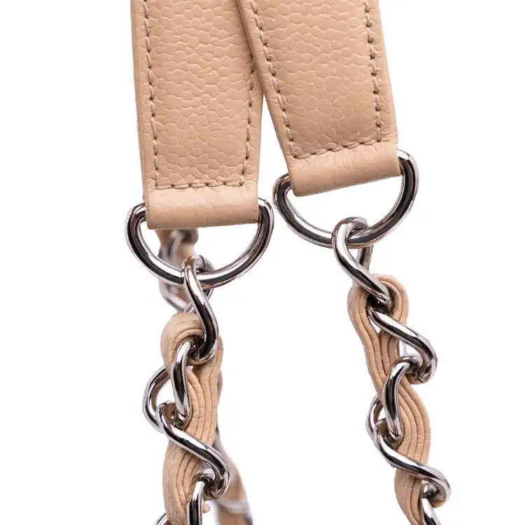 Description | The Grand Shopping Tote features a quilted caviar leather body, leather woven chain shoulder straps, an open top, an exterior slip pocket, and interior zip and slip pockets. | ||||||||||||