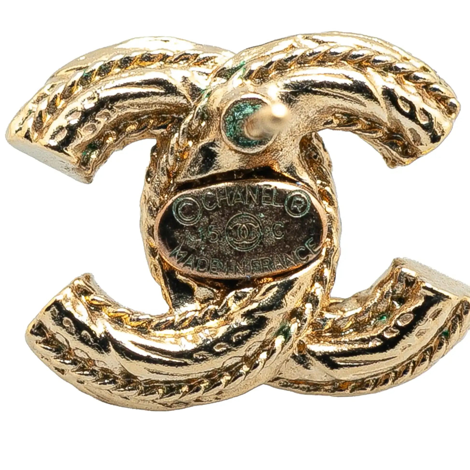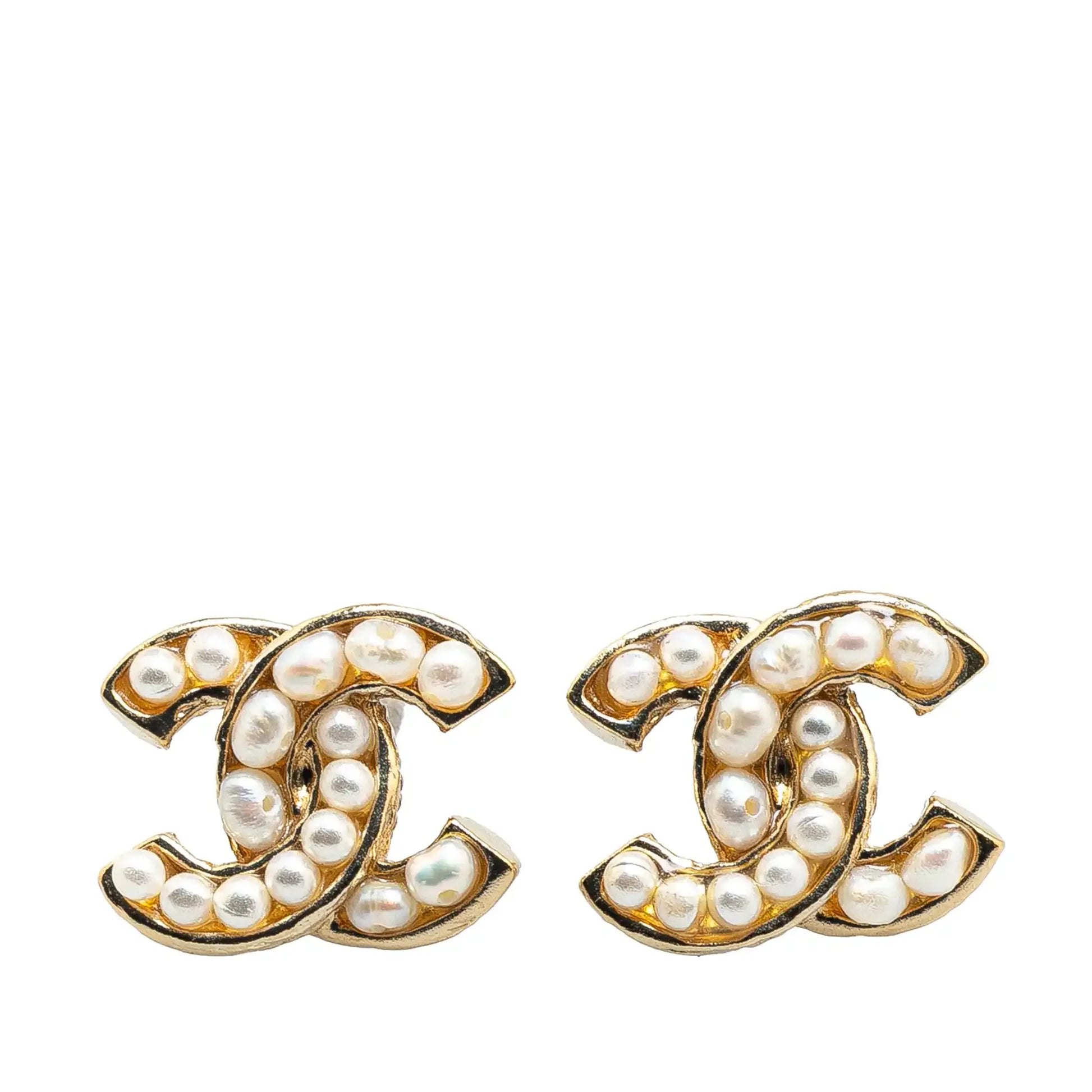 Chanel CC Gold Plated Faux Pearl Push Back Earrings